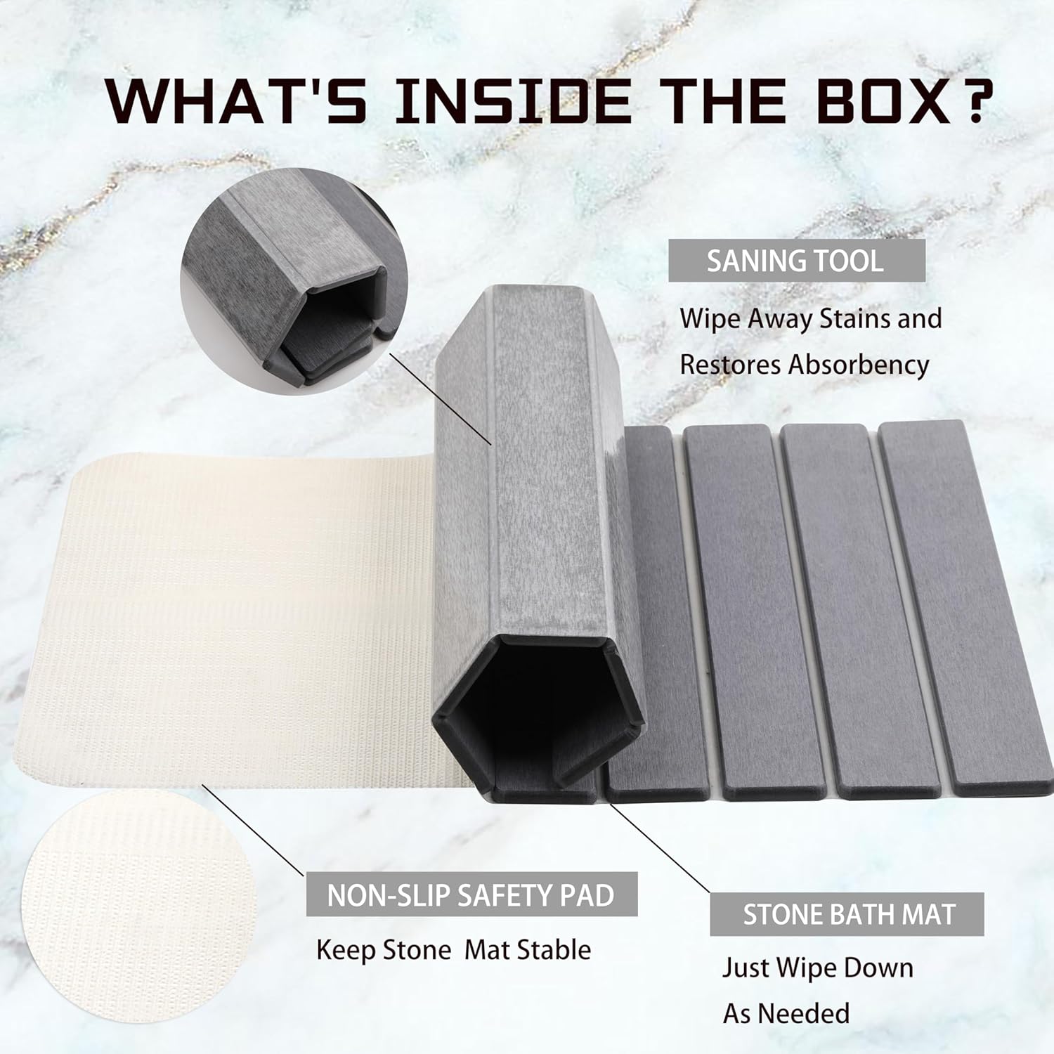 - 【Non-slip Bathroom Floor Mat】This drying pad can also be used outside the bathroom door next to the bathtub, which is both non slip and can quickly absorb moisture.Anti-slip mat can be placed under the diatomite stone bathroom mat to prevent the mat from sliding on wet ground. Give it a good grip on the floor and keep it in place. The texture on the surface of the shower stone mat increases friction. Please note that the bathroom mat must be placed on a solid and flat surface.
