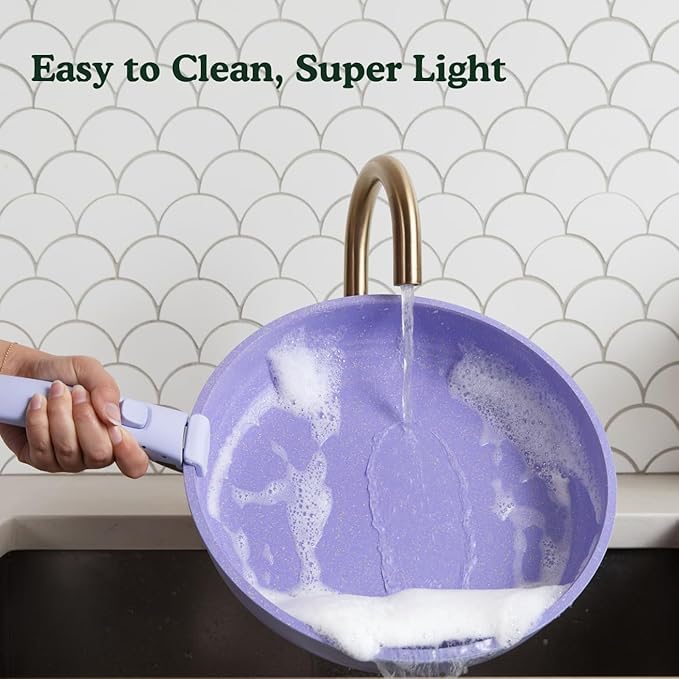 BytheTable Ombré Ceramic Titanium Non-Toxic, Nonstick Cookware Set 8-Piece Modular System with Removable Handle and Magnetic Lid, Magnetic Spatula, Eco-Friendly, Oven & Dishwasher Safe (Lavender)