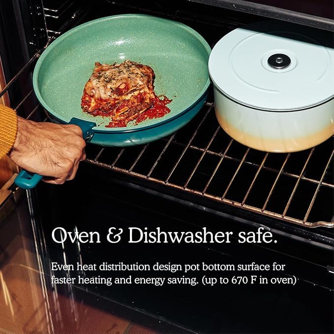 - Oven & Dishwasher safe. Even heat distribution design pot bottom surface for faster heating and energy saving. (up to 670 F in oven)