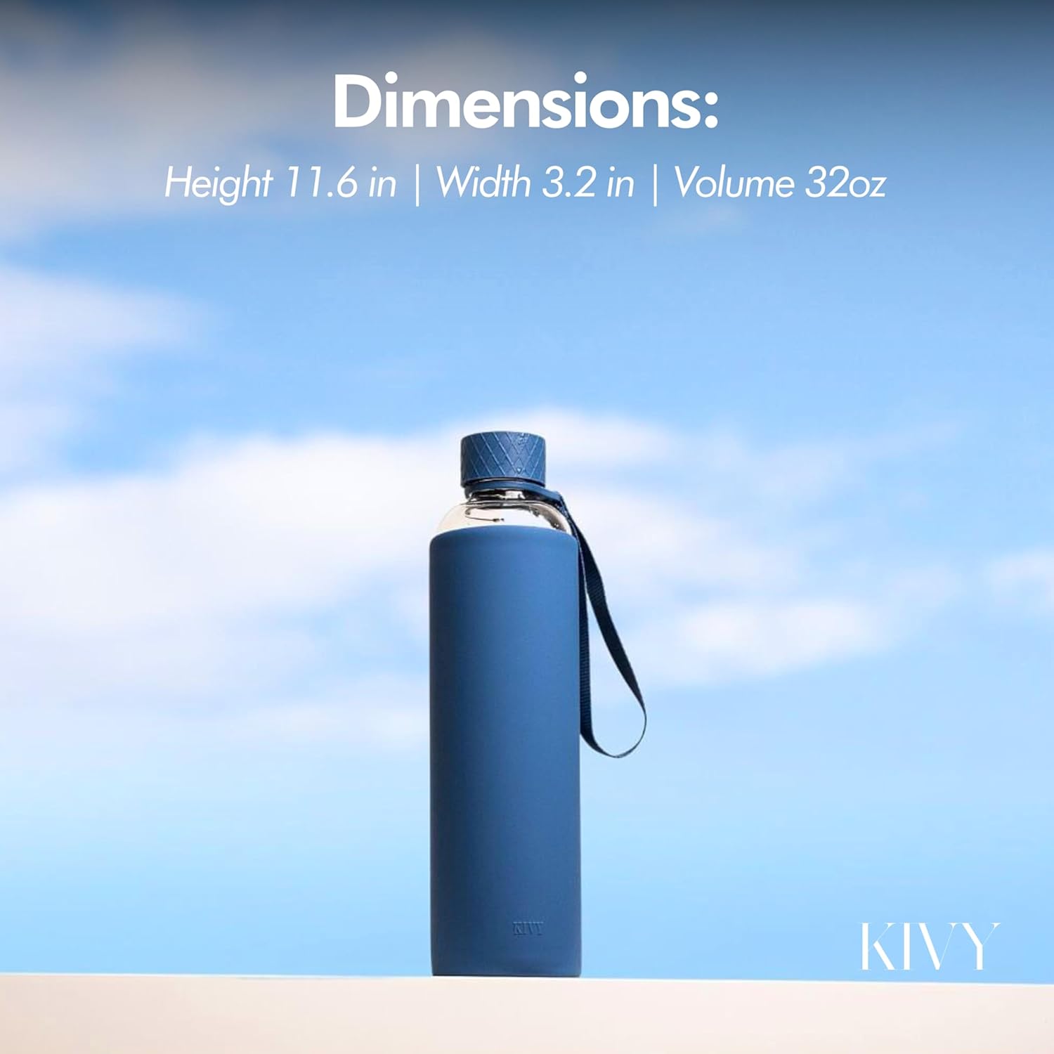 - DETAILS: Borosilicate Glass water bottle with screw top and handle strap: V 32 oz | H 11.6 in | W 3.2 in| Comes in a minimalist and secure packaging.