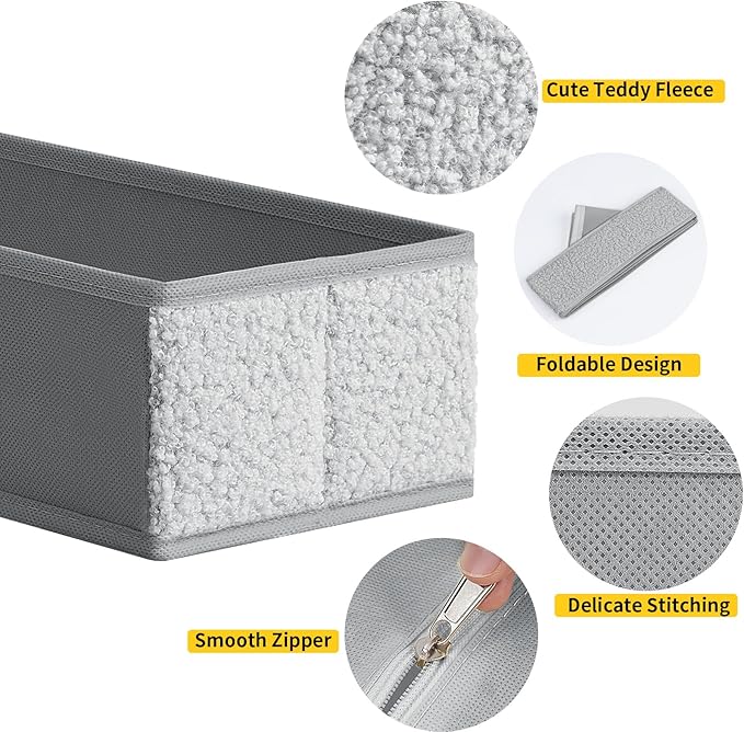 - [Teddy Fleece Design] One side of the clothes drawer organizer features soft teddy fleece, adding warmth and charm. Available in various colors to match different decor styles. Kindly note: To allow for easy folding, the teddy fleece is only on one side of the clothing drawer organizer