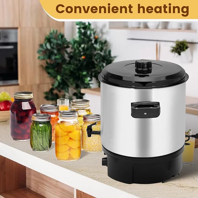 - [Easy to clean]: The Electric Water Bath Canne is furnished with an outlet valve. By opening the outlet valve alone, the water source within the automatic canning pot can be discharged. There is no need to tilt the heavy Electric Bath Canner. After usage, simply wipe the water bath canner gently with a damp cloth to make it look brand new