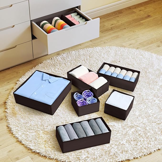 - [Create Extra Space]: Tired of overstuffed closets and cluttered drawers? Our drawer organizer clothes are ideal for every corner of your home, from bedrooms and nurseries to laundry rooms and bathrooms. Use them as drawer dividers or on shelves to make the most of your space and create a calm, tidy setting