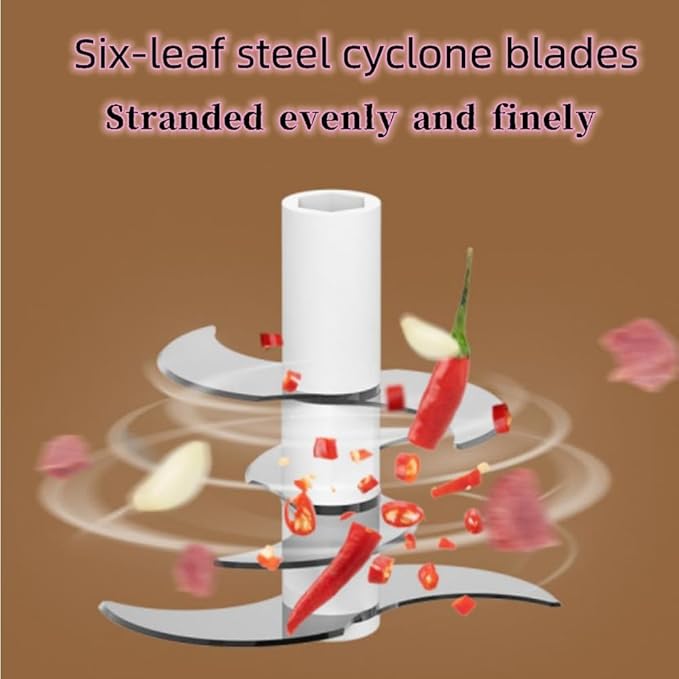 - 【EFFICIENT AND VERSATILE】: Our electric garlic press is a high-performance kitchen tool that can quickly chop garlic, seasonings, nuts, onions, vegetables, peppers, minced meat, and even ice cubes. Its 6 sharp blades and 45w motor make it easy to process small amounts of food for cooking, children's food supplements, and smoothie drinks.