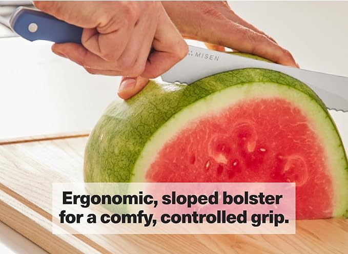 Misen Serrated Bread Knife – High-Carbon Japanese AUS8 Steel – Effortless Slicing of Bread, Pastries, and Fruits – Razor-Sharp Edge and Durable Blade with Ergonomic Handle - 8", Green