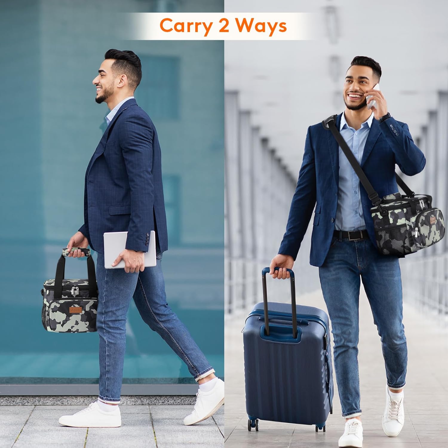 - Convenient & Portable: The lid of this cooler lunch bag can be opened up widely with strong two-way zippers, which means you can put your lunch container into the bag and take out of the bag vertically. Prevent liquids from leaking out of the container and soiling inside the bag. Tough handles and shoulder girdle allows you to carry it easily. Moreover, the front and side extra pocket can hold small items like keys and earbuds.