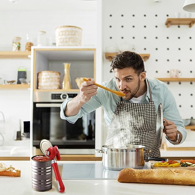 - Effortless Operation: Simply clip the cutting plate of the can opener to the side of the can and gently turn the handle so that the cutting wheel rotates along the edge of the can until a complete rotation is completed. It can be opened clockwise or counterclockwise, and can also be used by people who are used to using their left hand