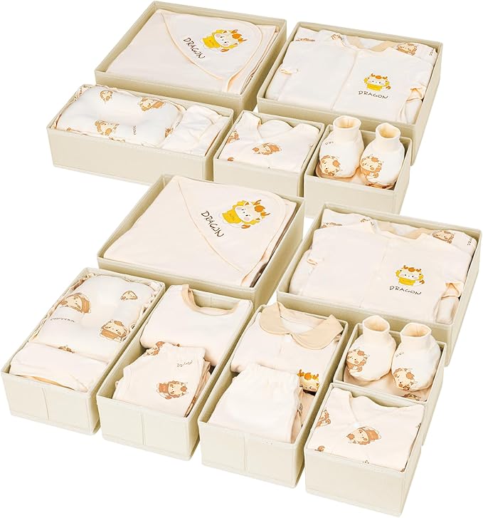 DIMJ Drawer Organizer Clothes 12 Pack - Foldable Baby Organizers and Storage & Dresser Organizer for Bedroom, Closet - Nursery Organization Dresser Dividers for underwear, Sock,Bra, Belt, Tie, Beige