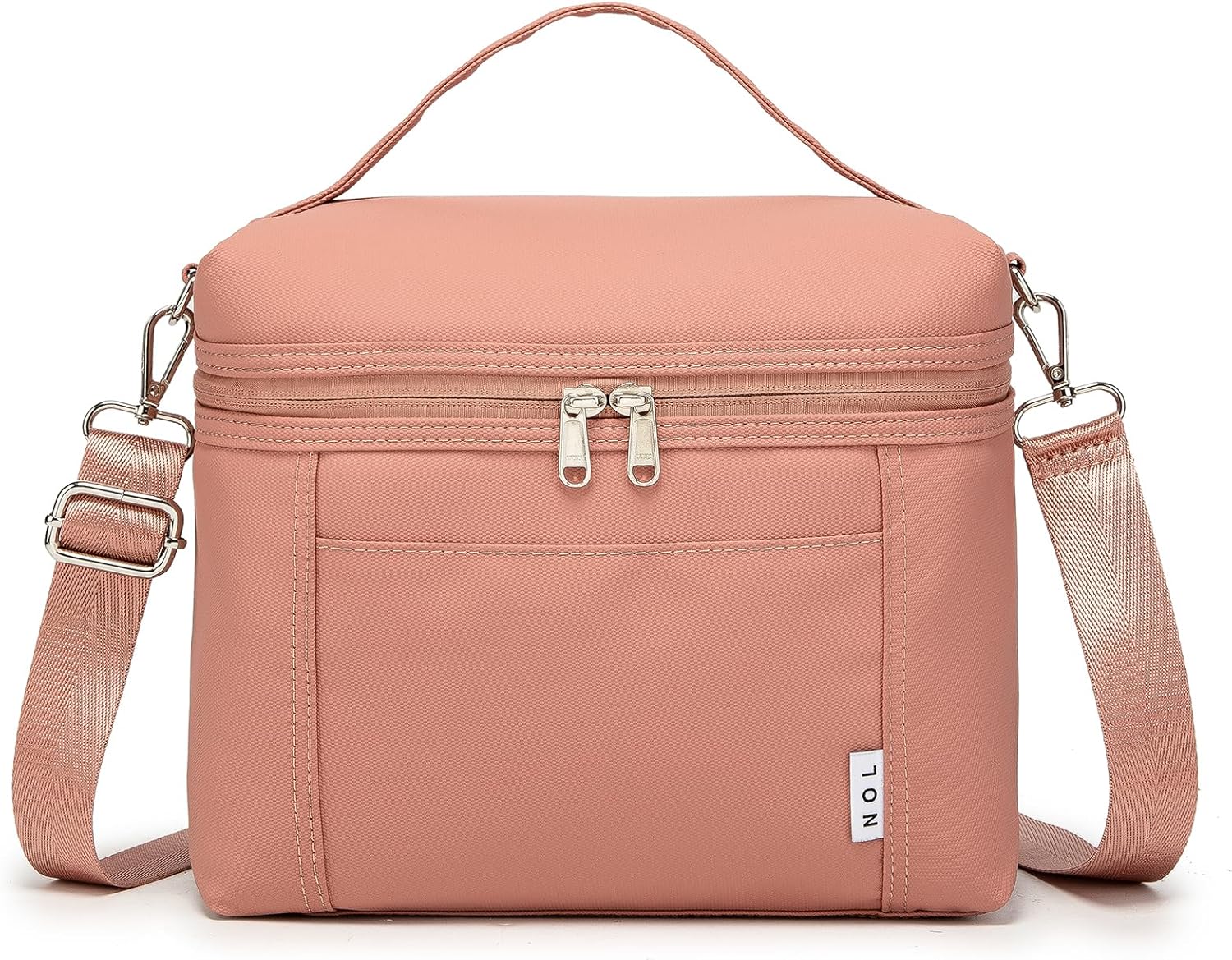 NOL Natural Organic Lifestyle Insulated Lunch Bags for Women Cooler Bag Lightweight Nylon Waterproof Lunch Box For Work (Small, Dark Pink)