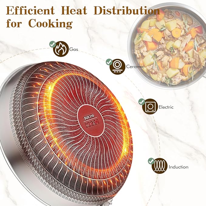 - 【No chemical coating, Healthy cooking-Technology for Superior Cooking】Our skillet features advanced tri-ply construction, combining aluminum sandwiched between two layers of high-quality stainless steel. This innovative design enhances conductivity for even heating while providing the durability and searing power of stainless steel