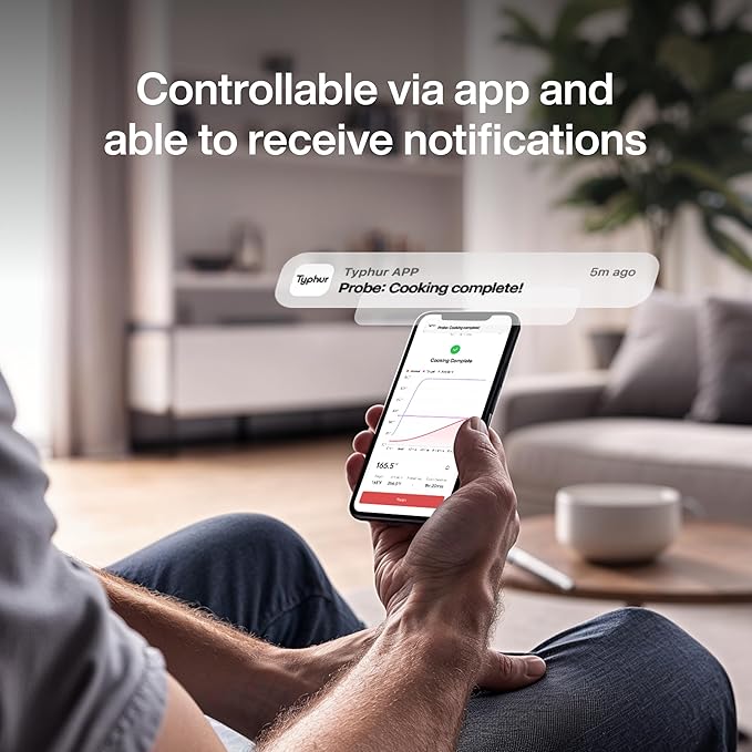 - Monitor Anywhere with WiFi: Stay connected to your cooking with the Typhur app by linking the meat thermometerstation to 2.4GHz WiFi. Effortlessly track your meat temperature on the go, with no distance limitations.