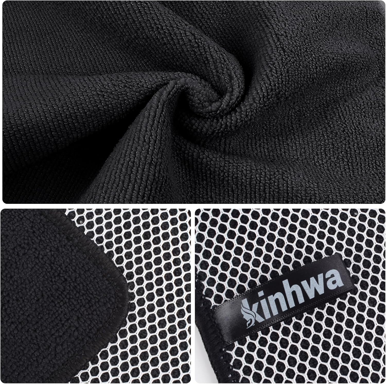 KinHwa Kitchen Washcloths for Dishes Absorbent Microfiber Dish Cloths Quick Dry Dish Rags with Poly Scour Scrub Side Ideal for Kitchen Cleaning (Black, 7inchx7inch 12 Pack)