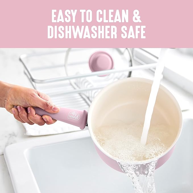 GreenLife 2 Quart Ceramic Nonstick Saucepan with Lid, PFAS-Free, Stay-Cool Handle, Multipurpose Kitchen Cooking Pot, Dishwasher & Oven Safe, Pink