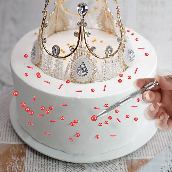 - 【Excellent Material】: Red sprinkles for cake decorating are made of food-grade safe ingredients, you can eat them with confidence. It can be eaten by men, women, old and young. The 4-claw pick up tool is made of stainless steel material, durable and retractable, it allows you to clamp and place pearl sugar smoothly.