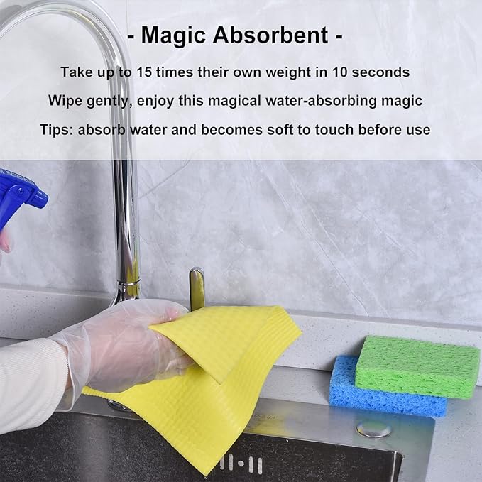 - 【Reusable & Long-sasting】: The compressed dish sponges and Swedish dish cloths are multi-purpose use with magic absorbent, durable, reusable and long-lasting.
