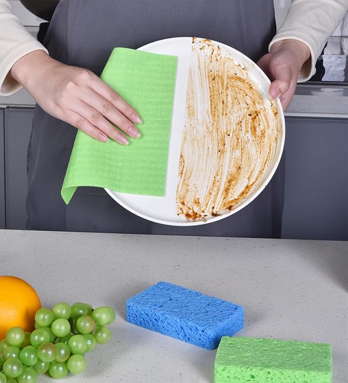- 【Economical & Multi-Purpose】: The kitchen sponges and Swedish Dishcloths can be used for all your cleaning job. Perfect for wiping stainless steel, marble, tile, and wood surfaces, scrubbing or drying dishes, mugs, sinks, cups, tubs, and showers for your kitchen, bathroom and other surfaces in the house or office.