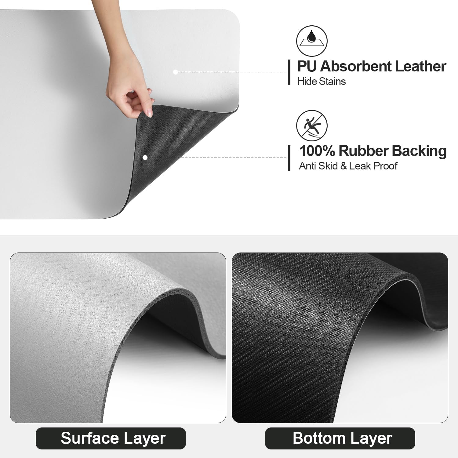 - 【Slip-Resistant & Durable】 The dish drying rack mat’s durable rubber backing prevents water from seeping underneath and avoids leaving marks on your countertop.