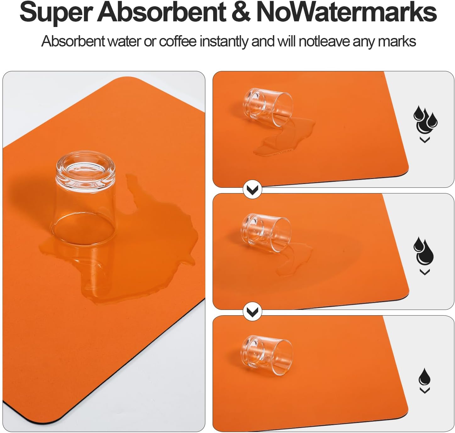 Dish Drying Mat for Kitchen Counter | Coffee Bar Mat for Countertops | Heat Resistant Drainer Mat with Non-slip Rubber Backed | Hide Stain Kitchen Absorbent Draining Mat | Orange 18"x28"