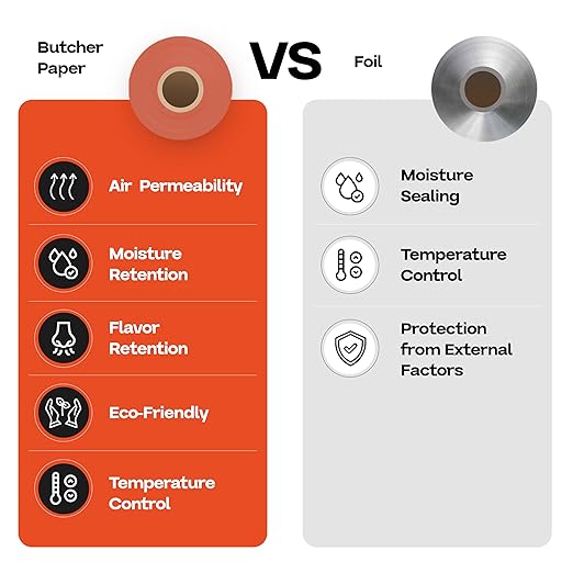- SUPERIOR TO FOIL: Our butchers paper outperforms foil with its breathable texture, which prevents meat from drying out and enhances flavor. It ensures even cooking, making it an excellent natural alternative, delivering exceptional results
