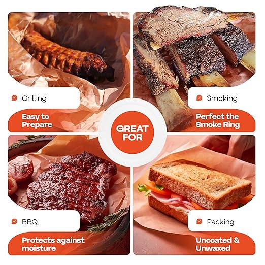 - MULTIFUNCTIONAL FOR COOKING AND STORAGE: Perfect for grilling, smoking, and storing, this bbq paper for smoking enhances flavor and tenderness while being durable and moisture-resistant. Ideal for both culinary and storage needs