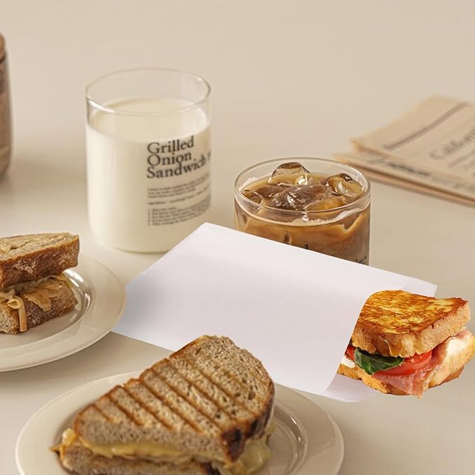 - GREASE AND WATERPROOF - Sandwich paper bags are made of natural paper and coated with food-grade PP film, which is strong and not easy to tear. No more worrying about grease seeping through the bag and onto your clothes