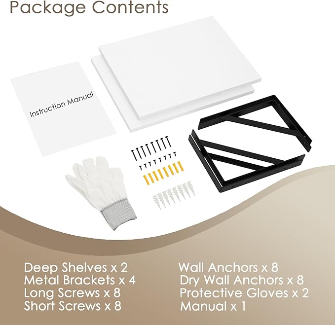- 【Installing Is A Breeze】Easy-to-read instructions give you a step-by-step guide. All the necessary hardware is included, even those with minimal DIY skills can set it up in no time. Two types of expansion screws are provided for different wall materials