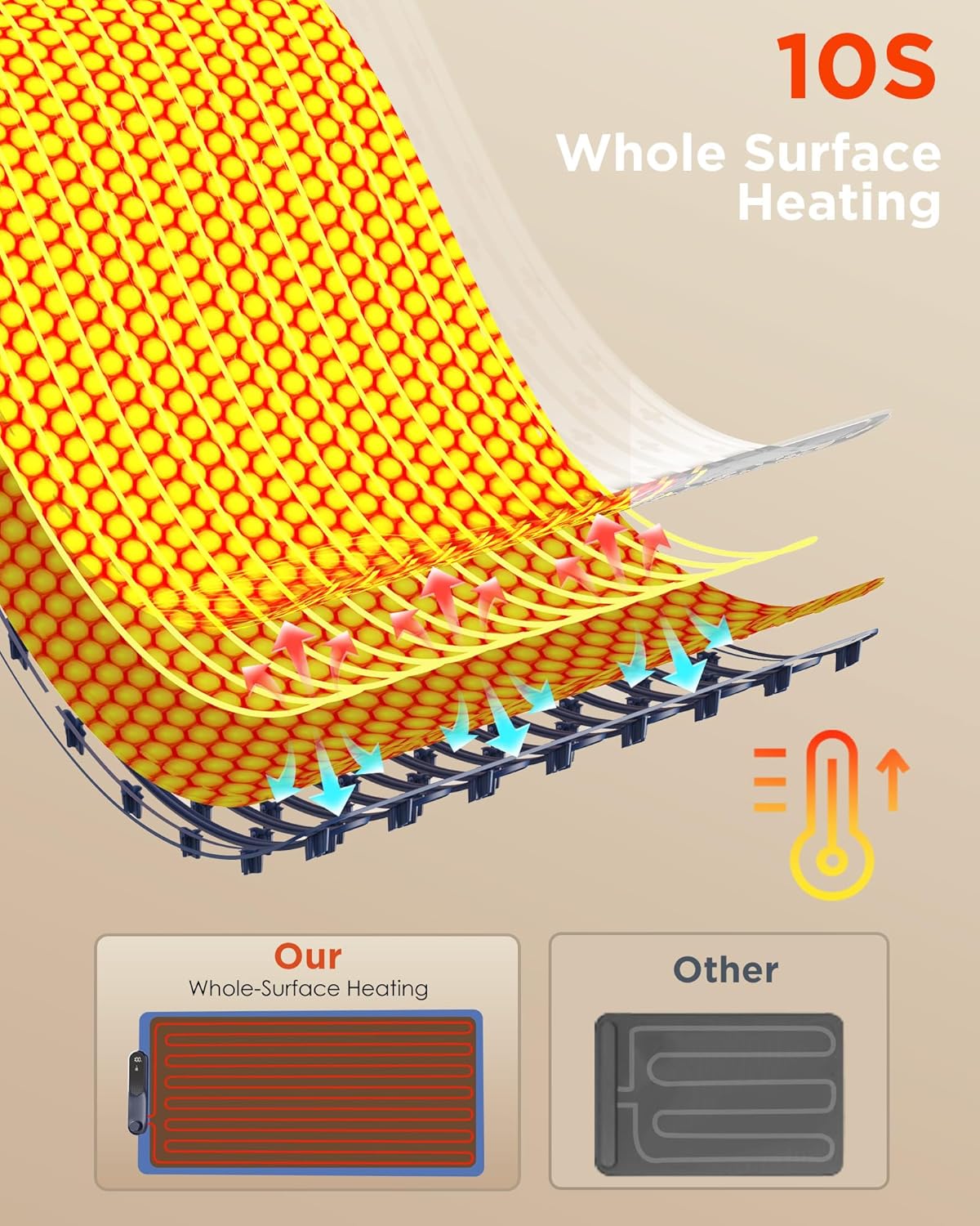 - 【10s Rapid Full-Surface Heating】Our electric warming tray features advanced upgraded heating technology with fully covered, evenly distributed heating wires. It achieves uniform heating across the entire mat in 10 seconds, less waiting for gatherings and meals, keeping your dishes warm