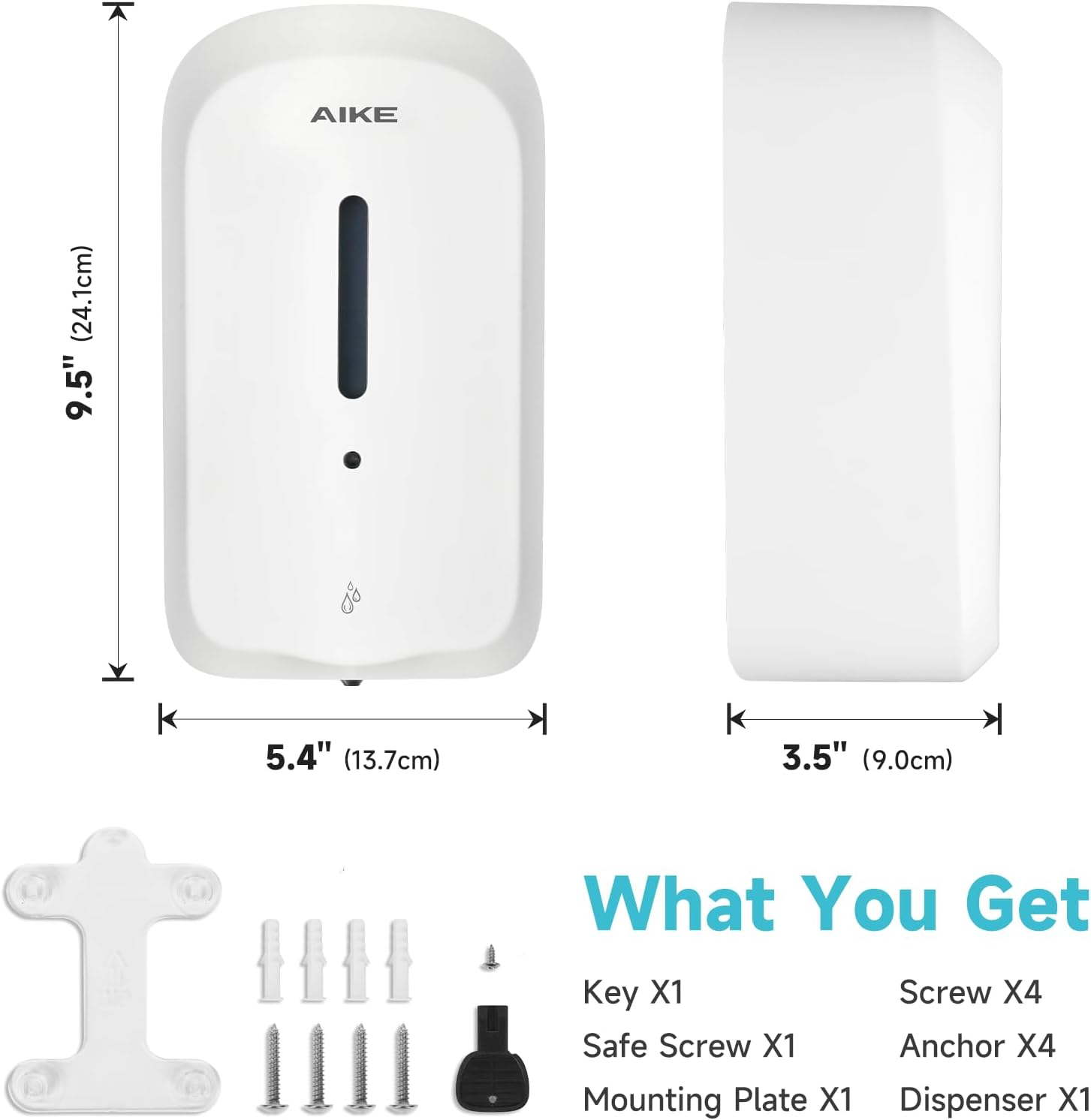 AIKE 33.8oz Automatic Wall Mount Liquid Soap Dispenser with Commercial ABS Construction, Model AK1226S(White)