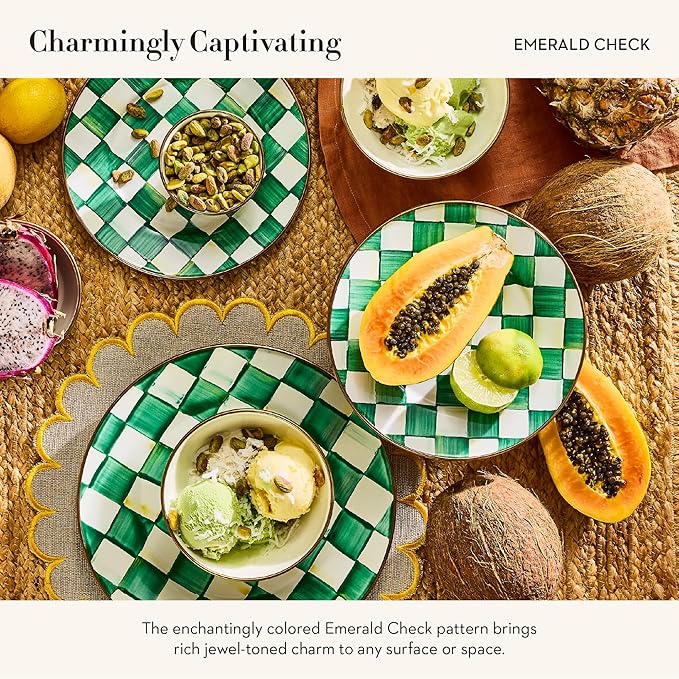 MACKENZIE-CHILDS Enamel Everyday Bowl, Serving Bowl for Entertaining, Extra Small, Green-and-White Emerald Check