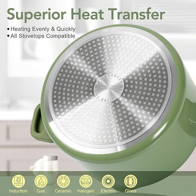 - Toxic-Free Ceramic Nonstick Pot – Eco-friendly ceramic coating resists scratches, avoids chemical fumes. Food slides off effortlessly—5x easier cleaning.