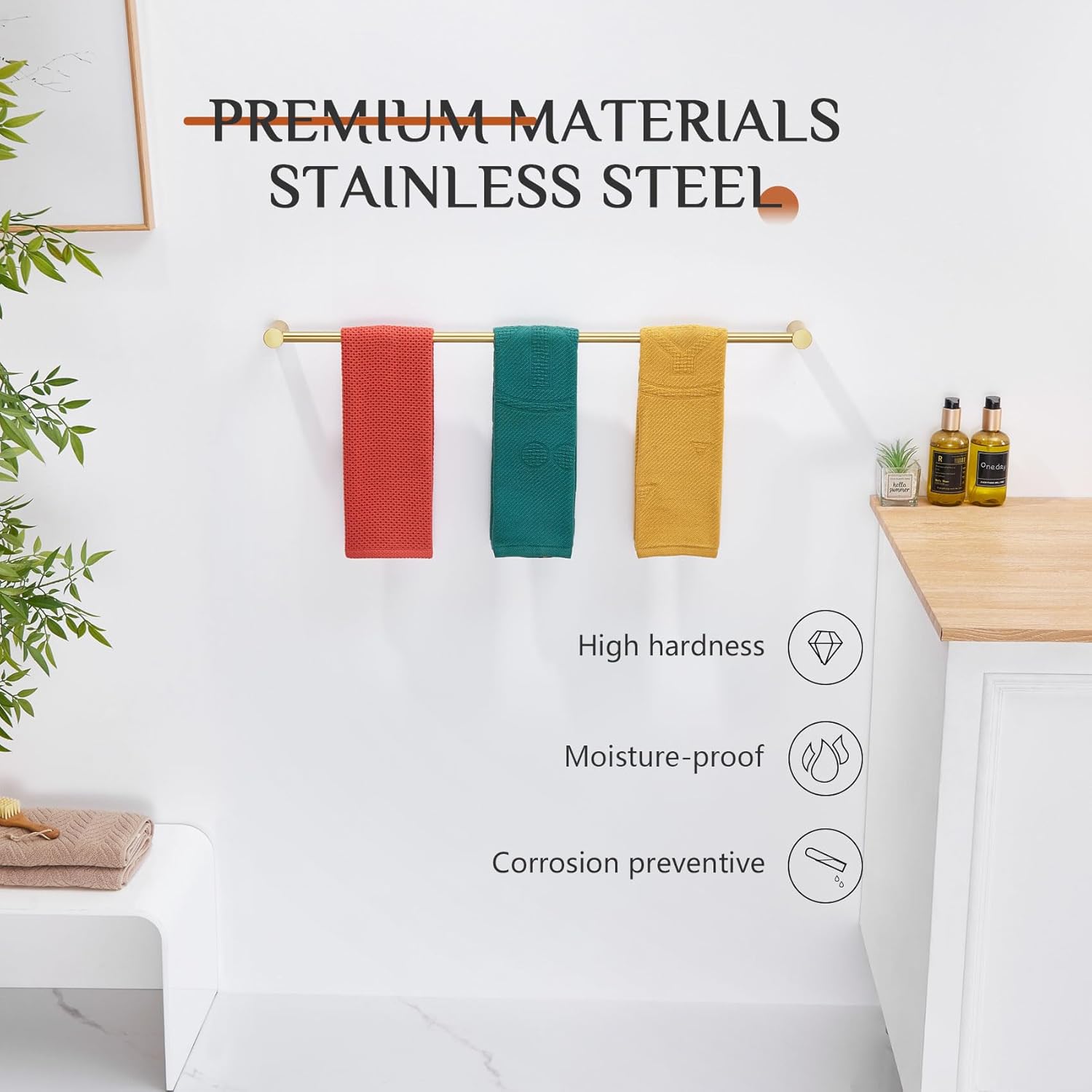 - ◄ BRUSHED GOLD ► The bathroom towel holder is brushed gold finish which is fingerprint-proof and water-proof. And the surface covering is resisting daily scratches, corrosion, and tarnishing