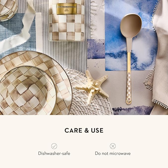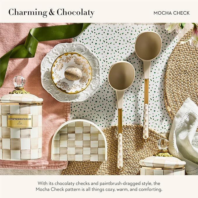 MACKENZIE-CHILDS Kitchen Ladle, Silicone Ladle Spoon for Cooking, Brown-and-White Mocha Check