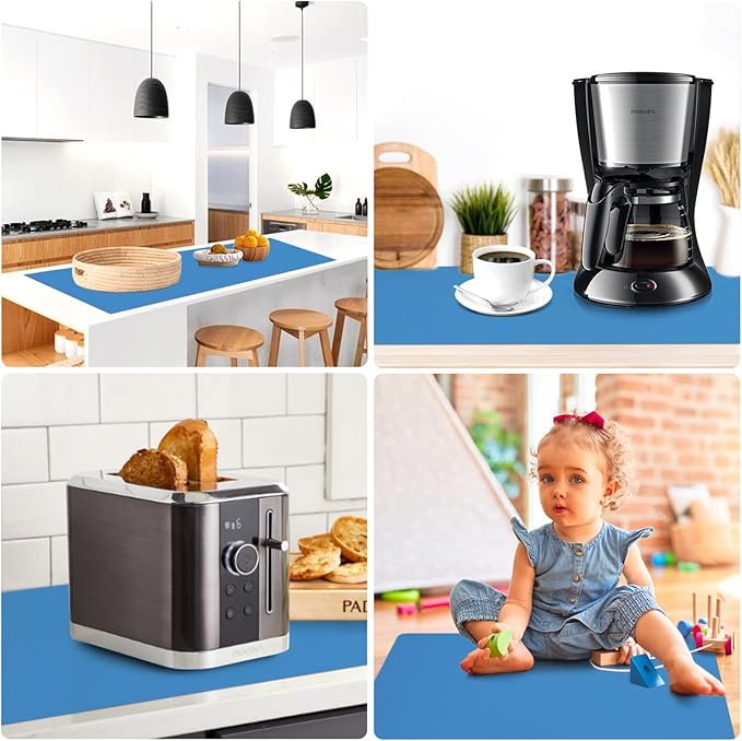 - 【Widely Application】Our silicone counter mats have widely application, such as home, kitchen, office, classroom or other occasion. They can be used for food preparation like pastry, bread, pie, pizza, surface protector, baby's placemat, kids’ activities. Perfect for DIY craft projects like making art crafts and casting molds to make personalized jewelry, paper crafting, kid painting, christmas ornament, home decoration etc.