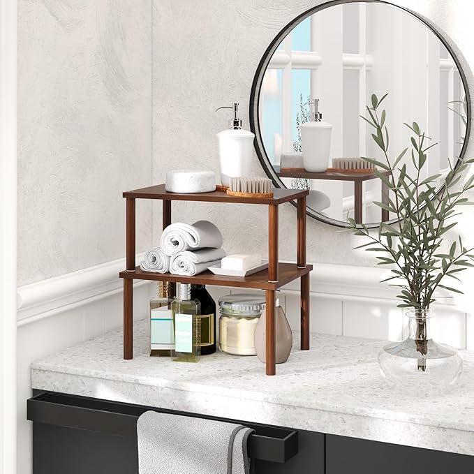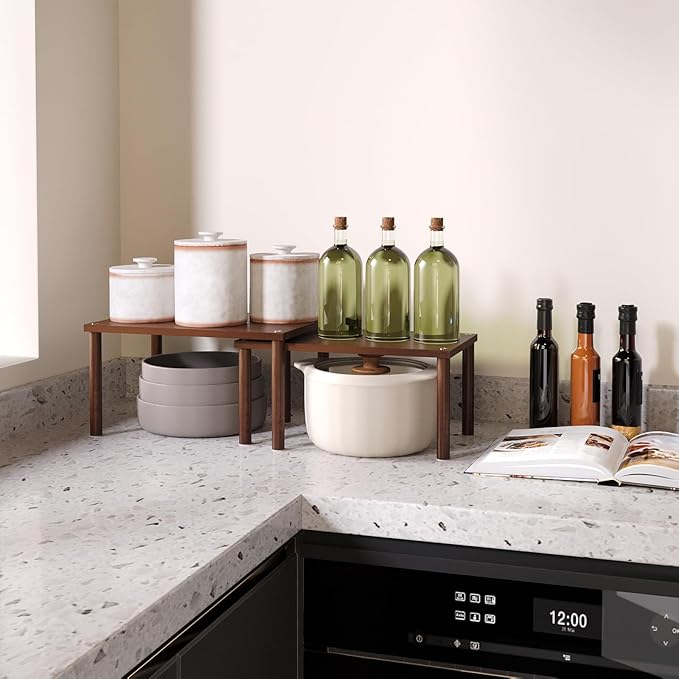 Cabinet Organizer Shelf(Set of 2),Kitchen Counter Shelves,Bamboo Spice Rack Countertop and Cabinet,Stackable Expandable,Medium(Brown)