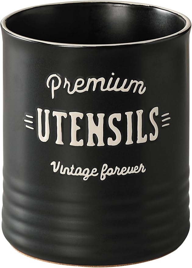 DOWAN 7.2″ Extra Large Utensil Holder, Farmhouse Utensil Holder for Kitchen Counter, Ceramic Utensil Crock with Protection Cork Mat, Utensil Storage for Kitchen Decor & Housewarming Gift, Matte Black