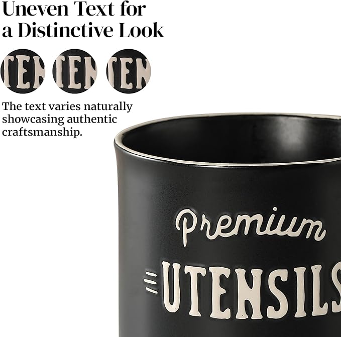 - Easy to Keep It Shiny: Crafted to be smooth and resistant to scratches, this spatula holder, is effortless to keep clean. You can wipe with a damp cloth or wash with soap to maintain the luster of this utensil jar, and the embossed lettering is designed to remain intact over time.