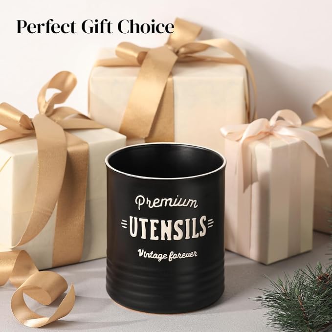 - Vintage Home Decor: This elegant and multi-purposed optimal utensil holder for kitchen counter, also serving as a utensil caddy or vase, is the best for those seeking a trendy, rustic farmhouse look. Add a little country charm to your home decor! If you’re looking for a memorable gift for your love, look no further, this will be a great gift she will use.