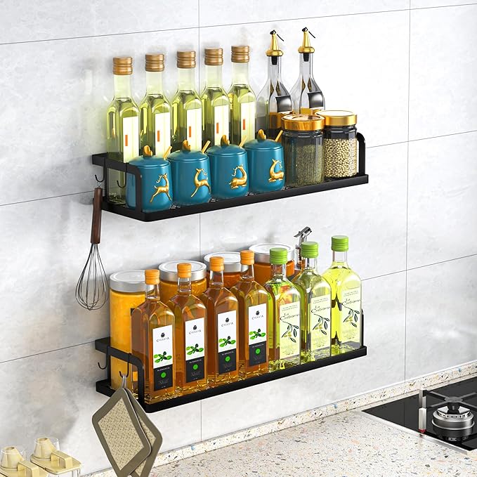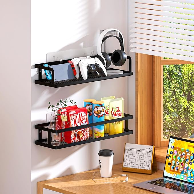 PUSDON Metal Wall Hanging Basket 2 Packs DIY Suitable for Multiple Scenes - Large Black Hollowout