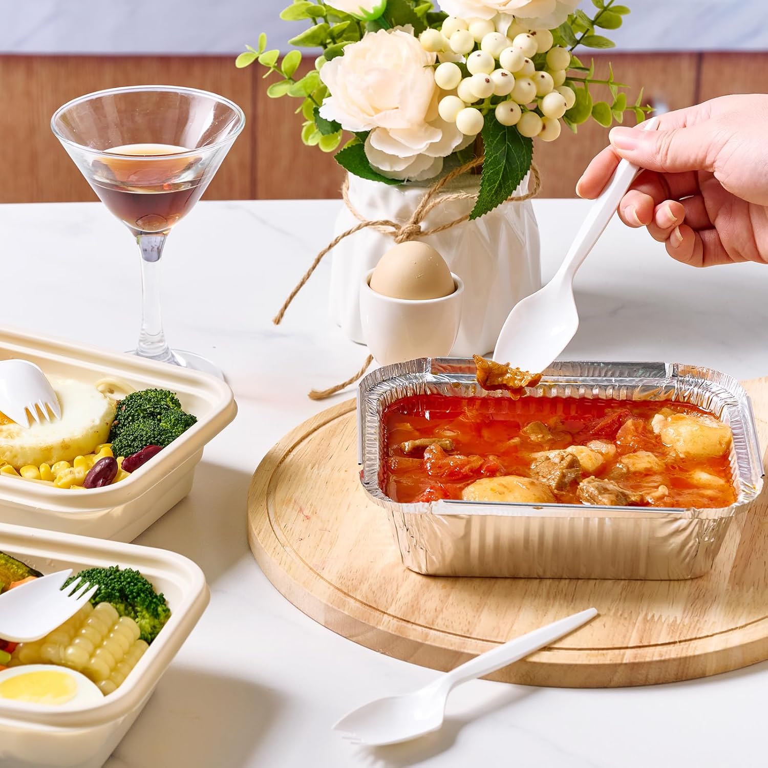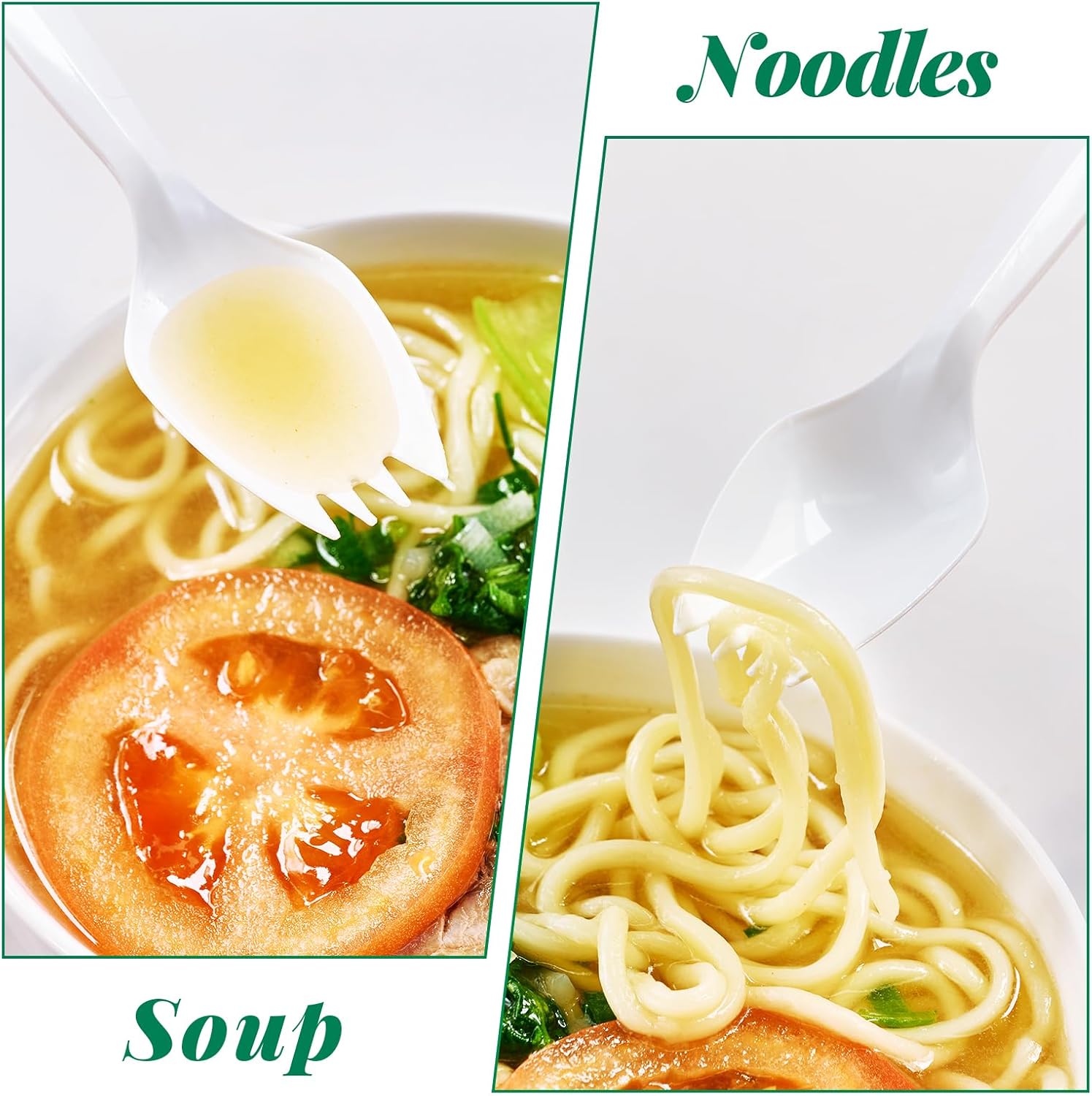 - Classic Match: This set of white small spork bulk effortlessly coordinates with every style, be it a family gathering or restaurant food. No matter the theme or color scheme, It's clean white aesthetic enhances the visual appeal of any table