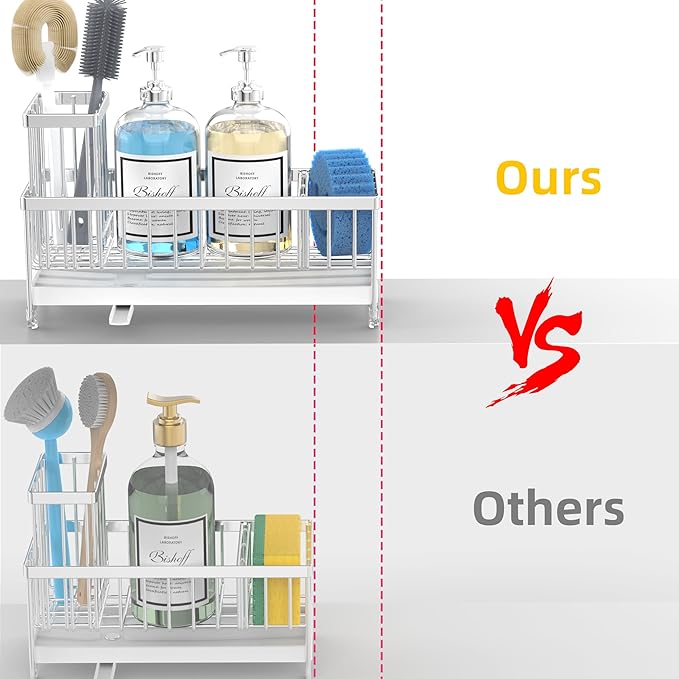 - 【BRUSH STORAGE RACK】The higher brush storage rack allows your brushes to be better stored without falling. The kitchen sink caddy can be used after receiving it, no installation is required, and it is widely used on sink countertops or bathrooms. It is a satisfying gift.