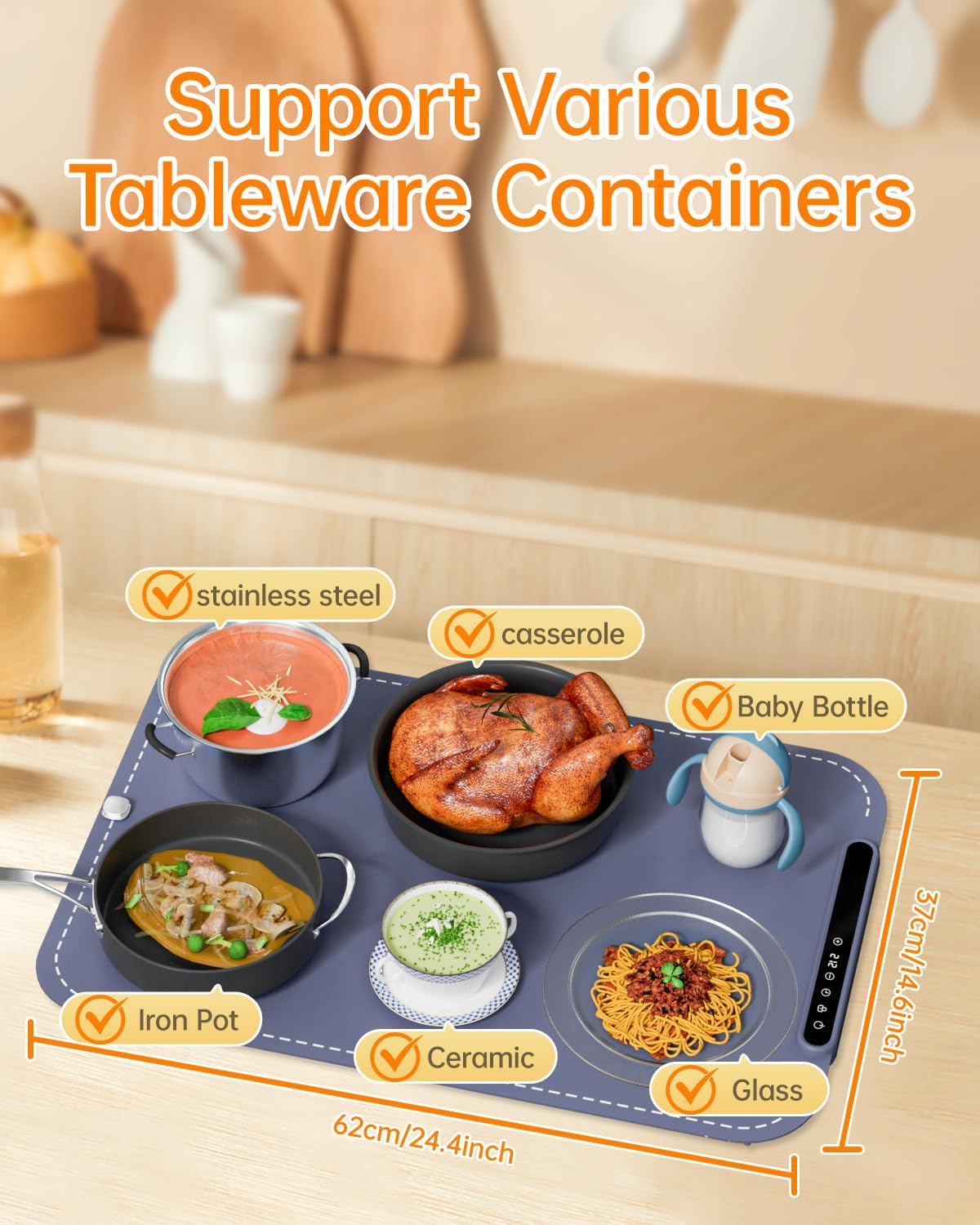 - Widely Compatible & Versatile Use: Designed for universal compatibility, our electric warming tray suits all types of materials tableware, as long as the high temperature resistant tableware can be used. Beyond serving as a food warmer, our heating mat is a versatile home assistant. Unlock a range of functionalities, mask heating, dough fermentation and defrosting are all easily handled.
