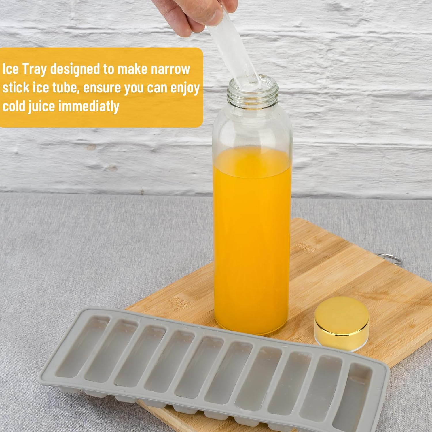 - SAVE MONEY WITH THIS VALUE PACK: Bundle includes : 12 pack clear 18 oz Zukro glass juice bottles with airtight lids, a bottle cleaning brush, a funnel to help pouring liquids inside the glass containers, a ice tray makes narrow ice cubes that is designed to put in the glass water bottles keeping it cold instantly, extra 1 piece lids to ensure that your reusable glass bottles always remain sealed. Get our juicing bottles in bulk packs for your whole family and friends.