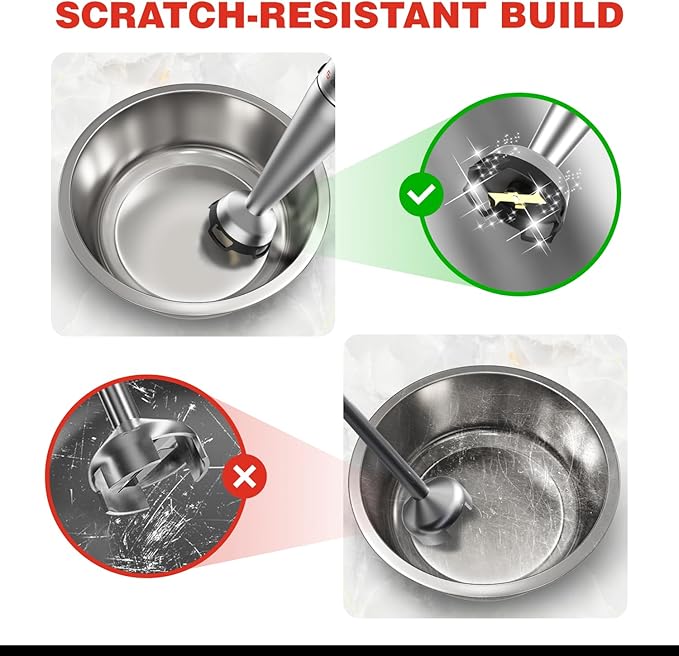 - [POWERFUL & EFFICIENT] – Equipped with a robust 1100W motor, our corded blender ensures consistent power and performance for smooth, lump-free blending. Built with titanium blades, this stick blender ensures precise blending and long-lasting durability.