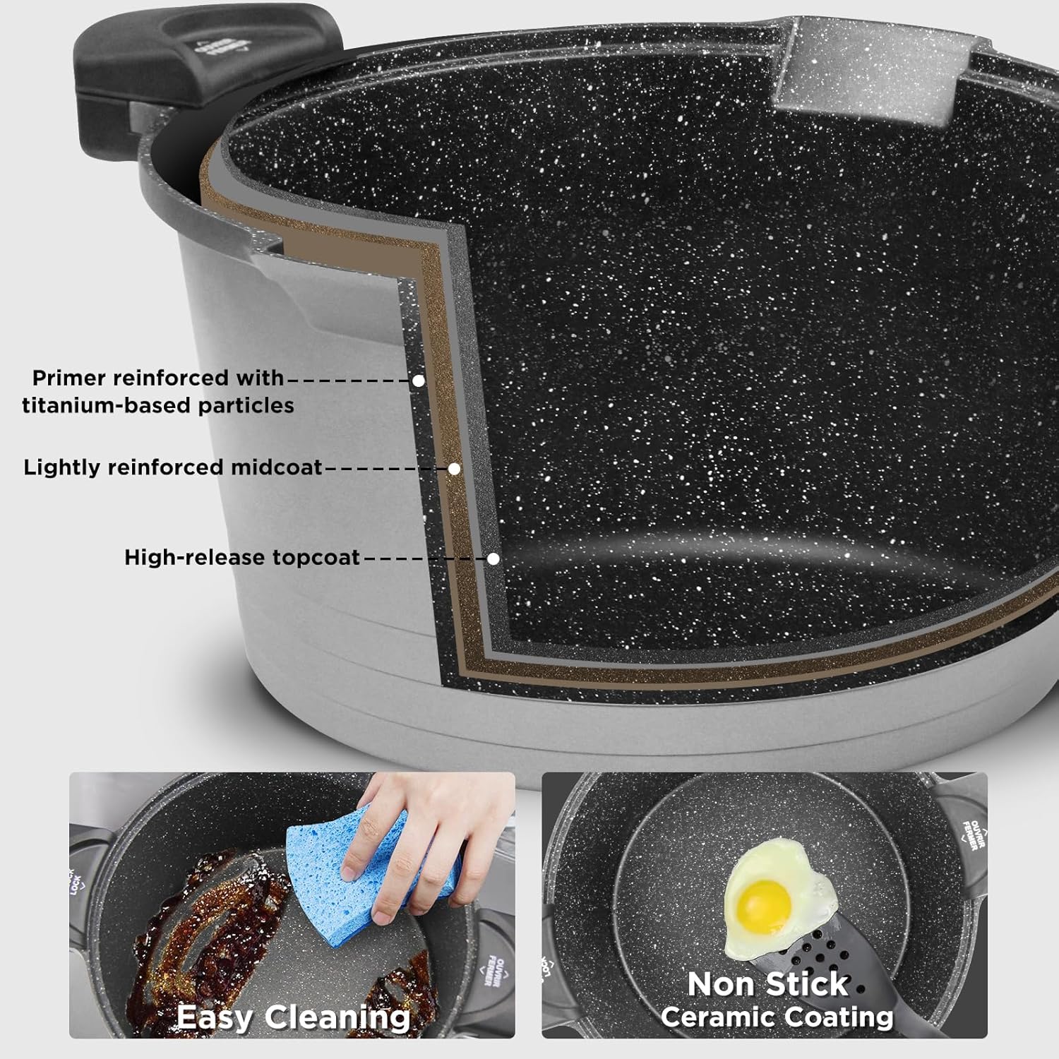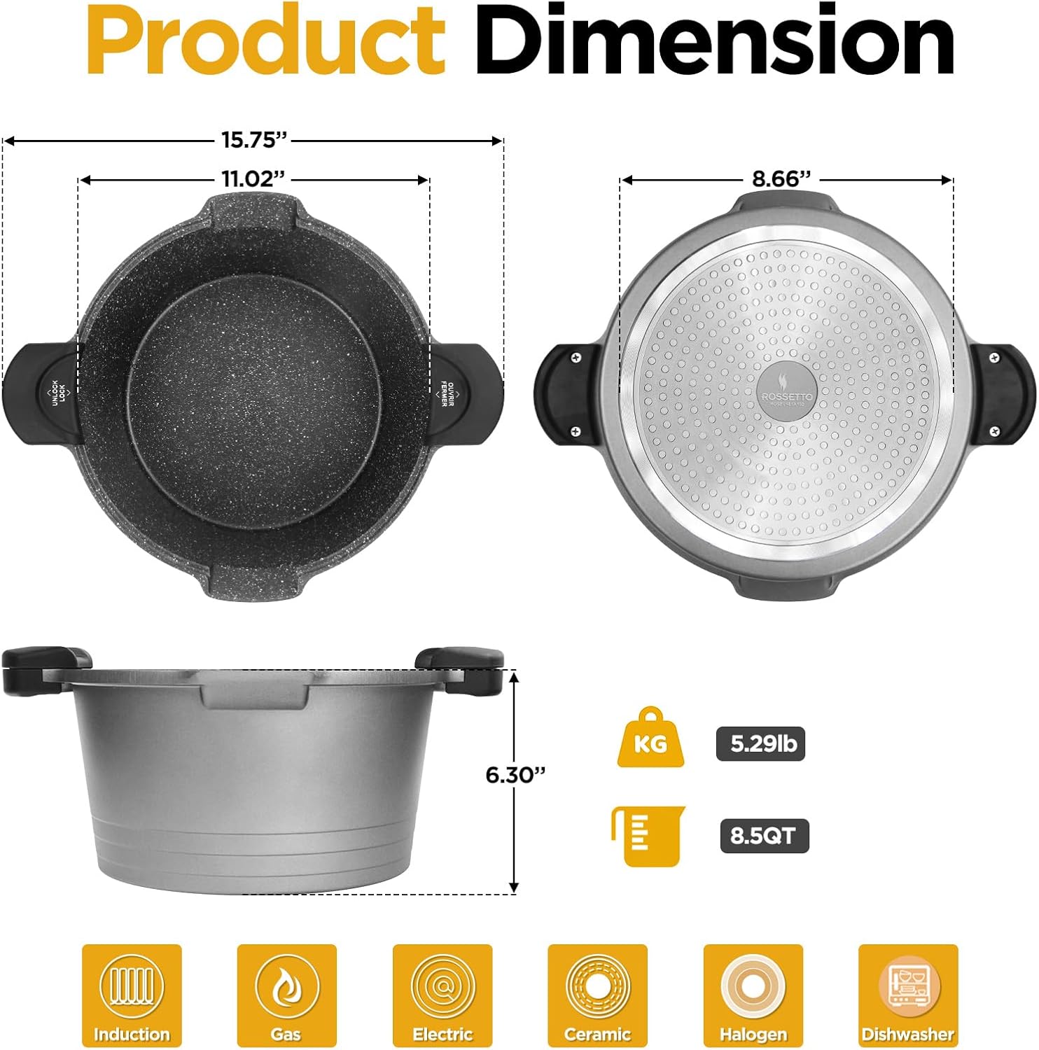 - Spacious 8.5QT Capacity – Ideal for cooking large portions of pasta, soups, stews, and boiling vegetables—perfect for family meals and gatherings.