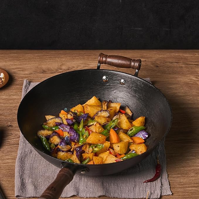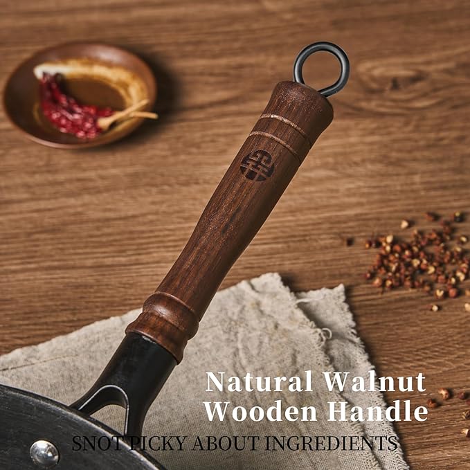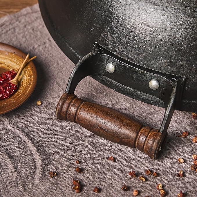 - HEALTHY COOKING:The Wangyuanji Cast Iron Wok is made of high-grade pure iron. Season the wok before use! A properly seasoned cast iron wok provides a safe, healthy, non-stick, and non-chemical cooking surface for your family