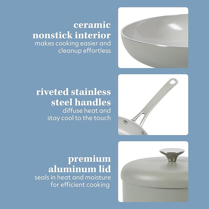 - CERAMIC NONSTICK COOKWARE: easy-release interior makes more room for healthier cooking options and less time for cleanup.