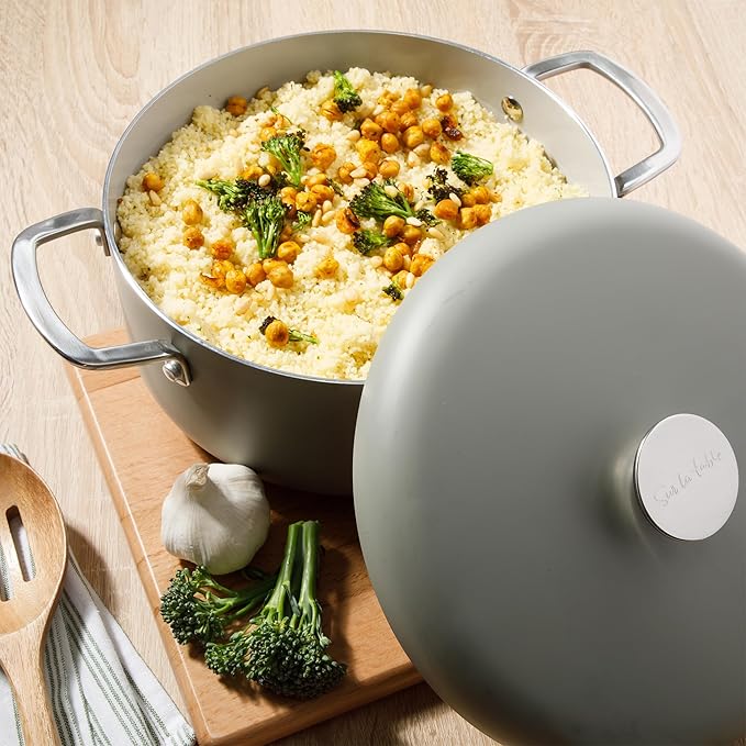 Sur La Table Kitchen Essentials Potluck Porch 10 Piece PFA Free Ceramic Non stick Interior Forged Aluminum Cookware Pots and Pans Set W/Aluminum Lids - Green - Induction Compatible