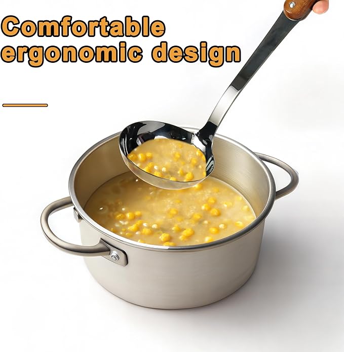 - Solid Kitchen Utensils: Wooden handle combined with polished mirror 304 stainless steel,combines sturdiness and aesthetics, the production process is more complicated, but it's worth it