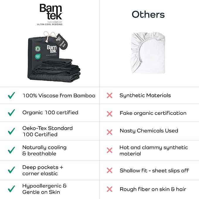 - Because You Deserve Better: Say goodbye to harsh chemicals, Bamtek 100% Viscose Bamboo Sheets are organically certified & Oeko Tex certified - skin friendly bedspread, a hypoallergenic bedding and those like you who value pure natural organic comfort.