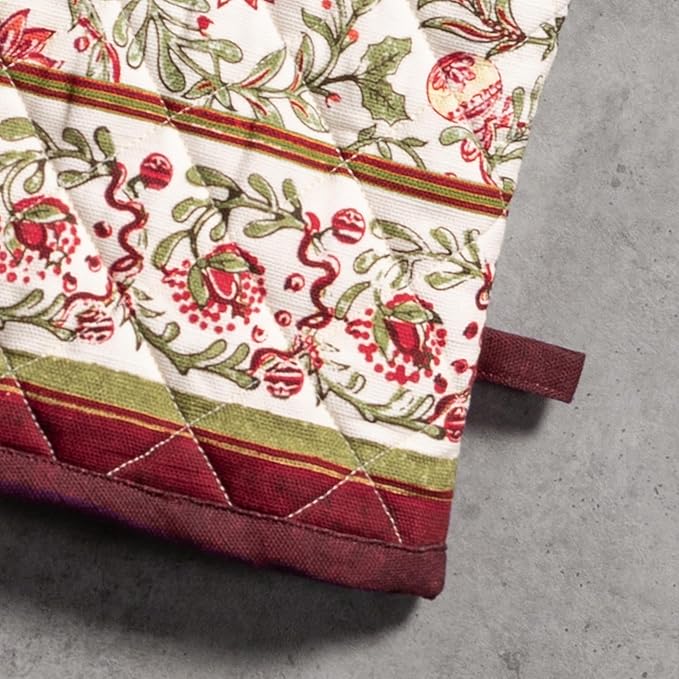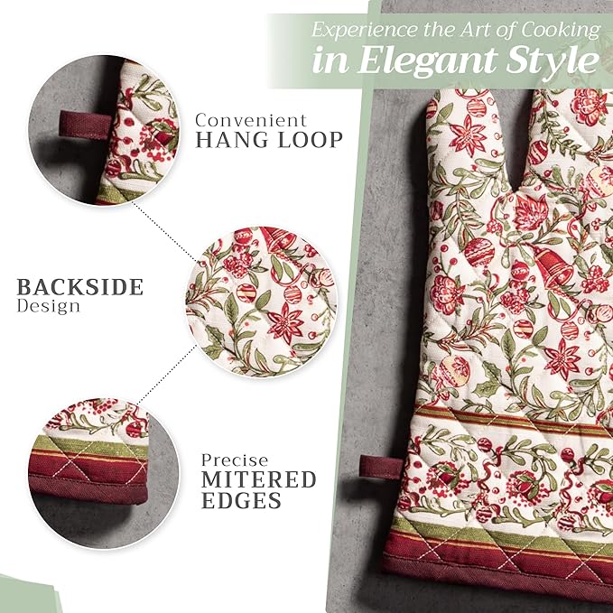 Maison d' Hermine Oven Gloves 100% Cotton Oven Mitt 7" x 13" with Loop Heat Resistant, BBQ, Cooking Gloves, Baking, Grilling, Kitchen, Handling Hot Pans (Pack of 1, Reveillon Au Jardin)
